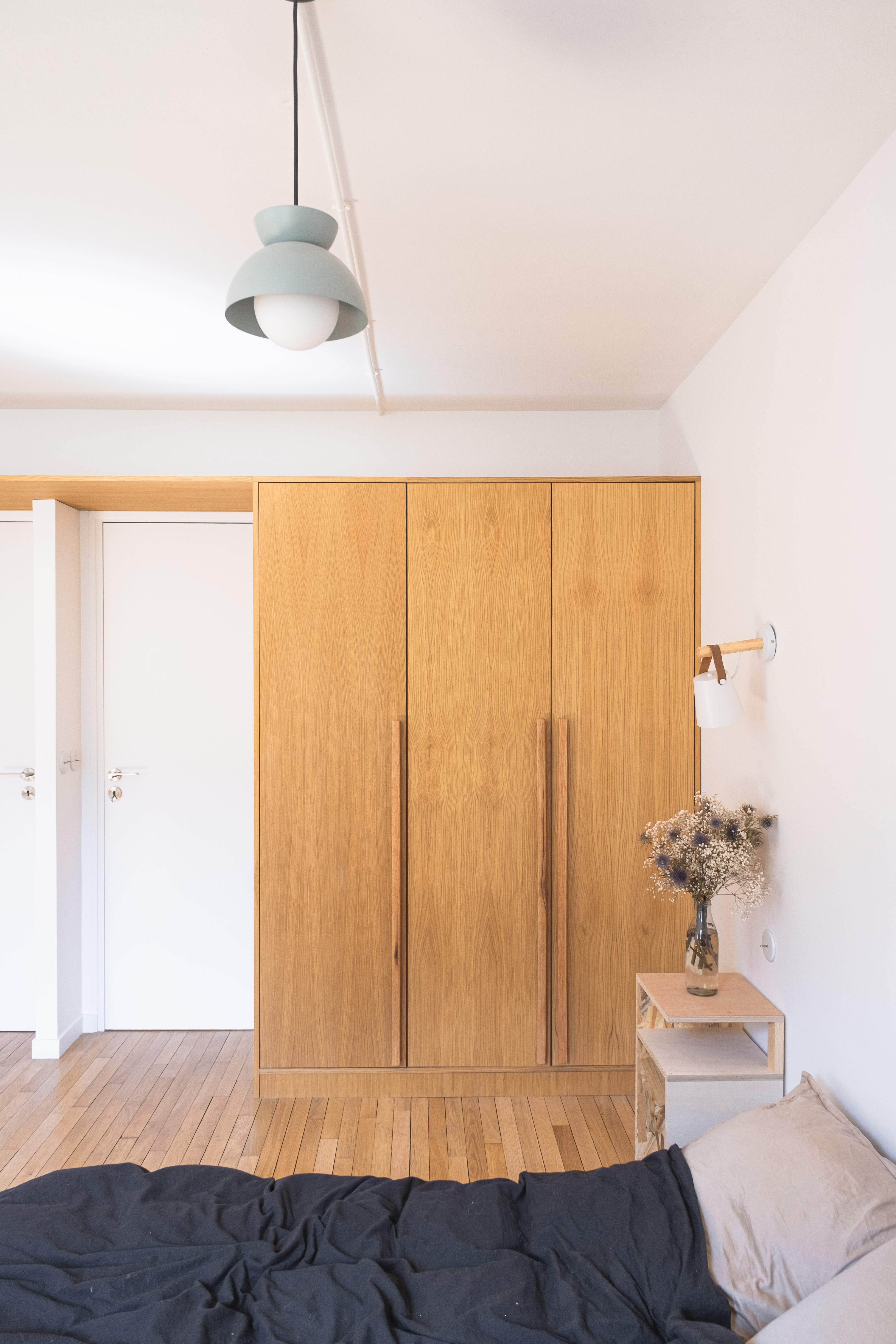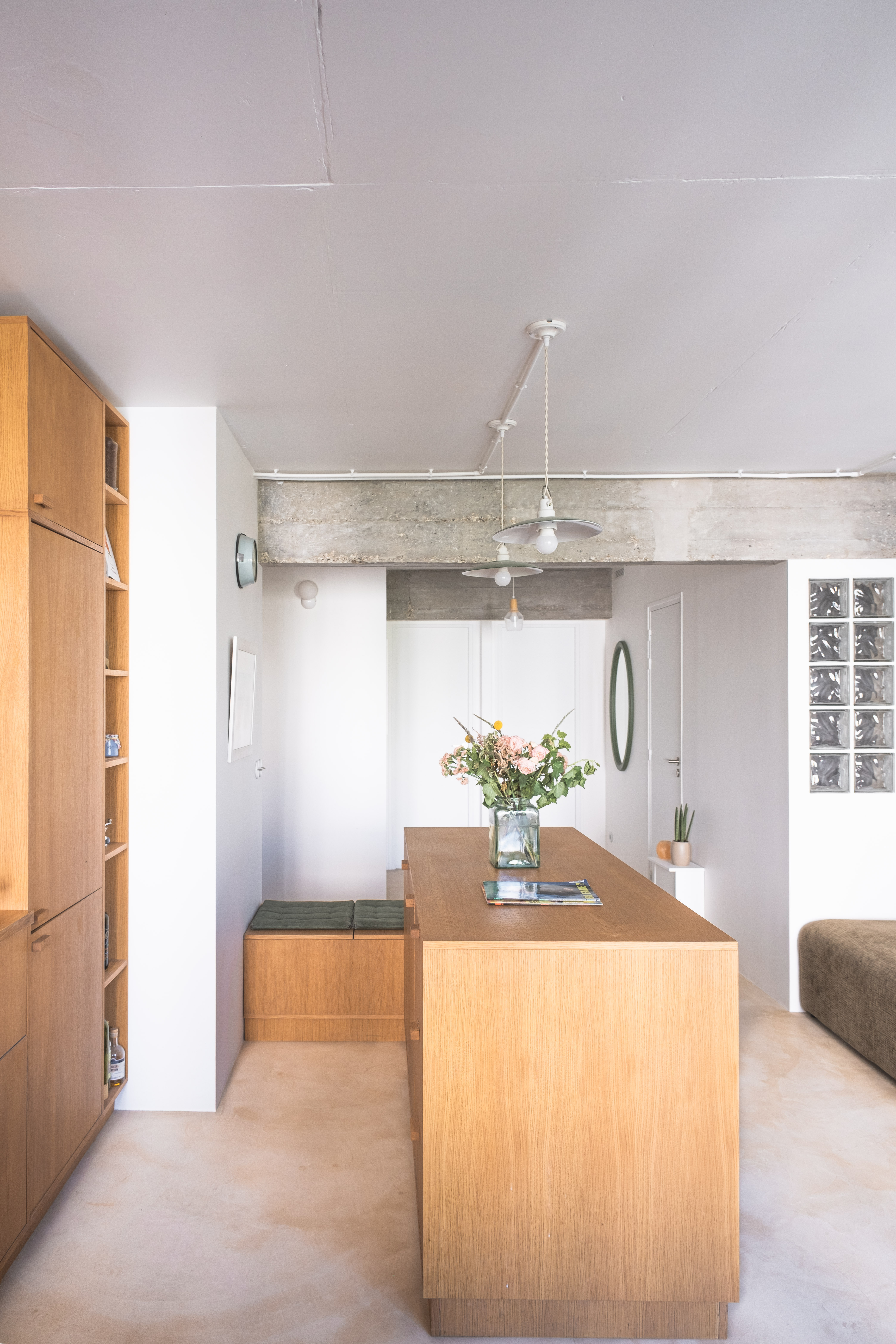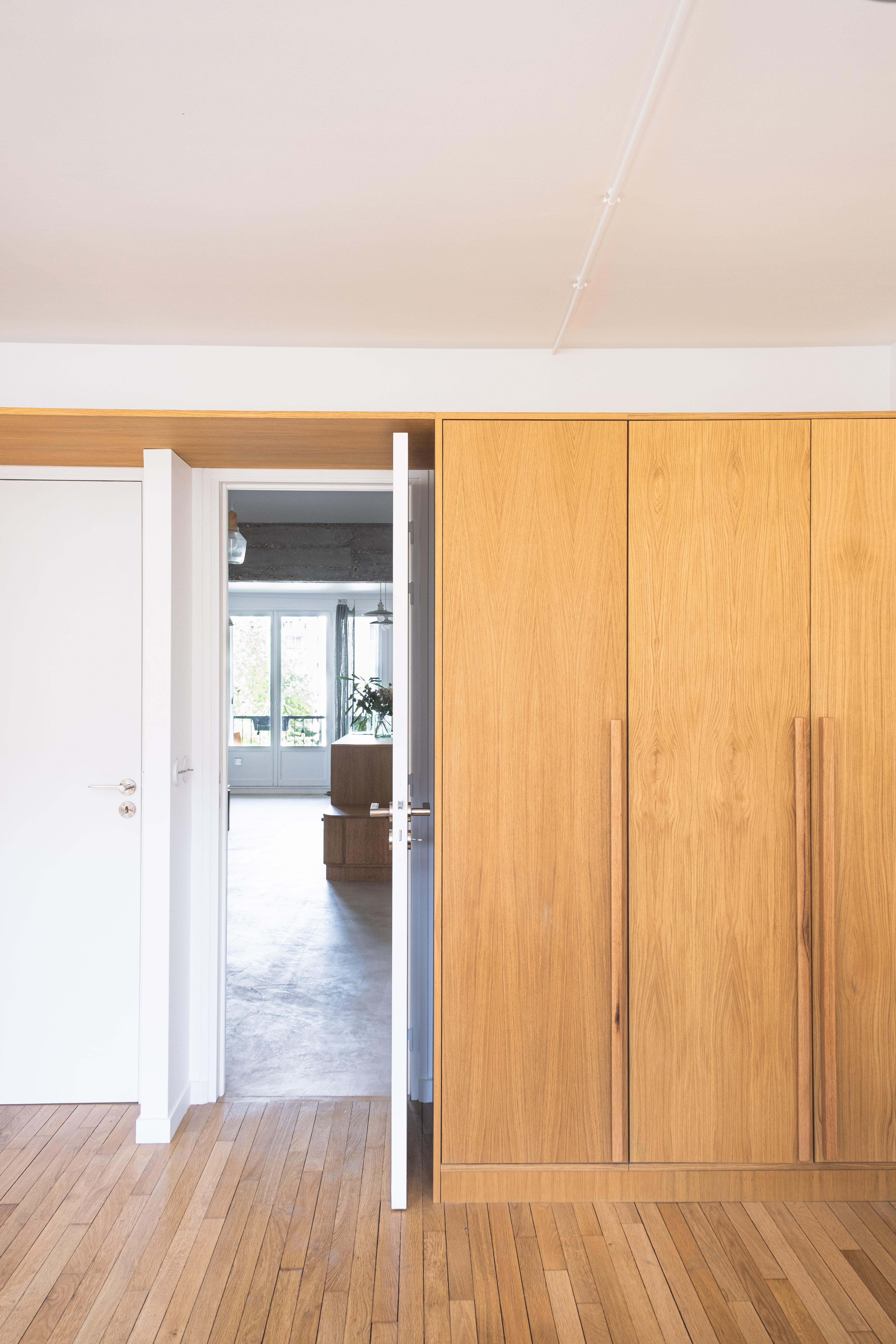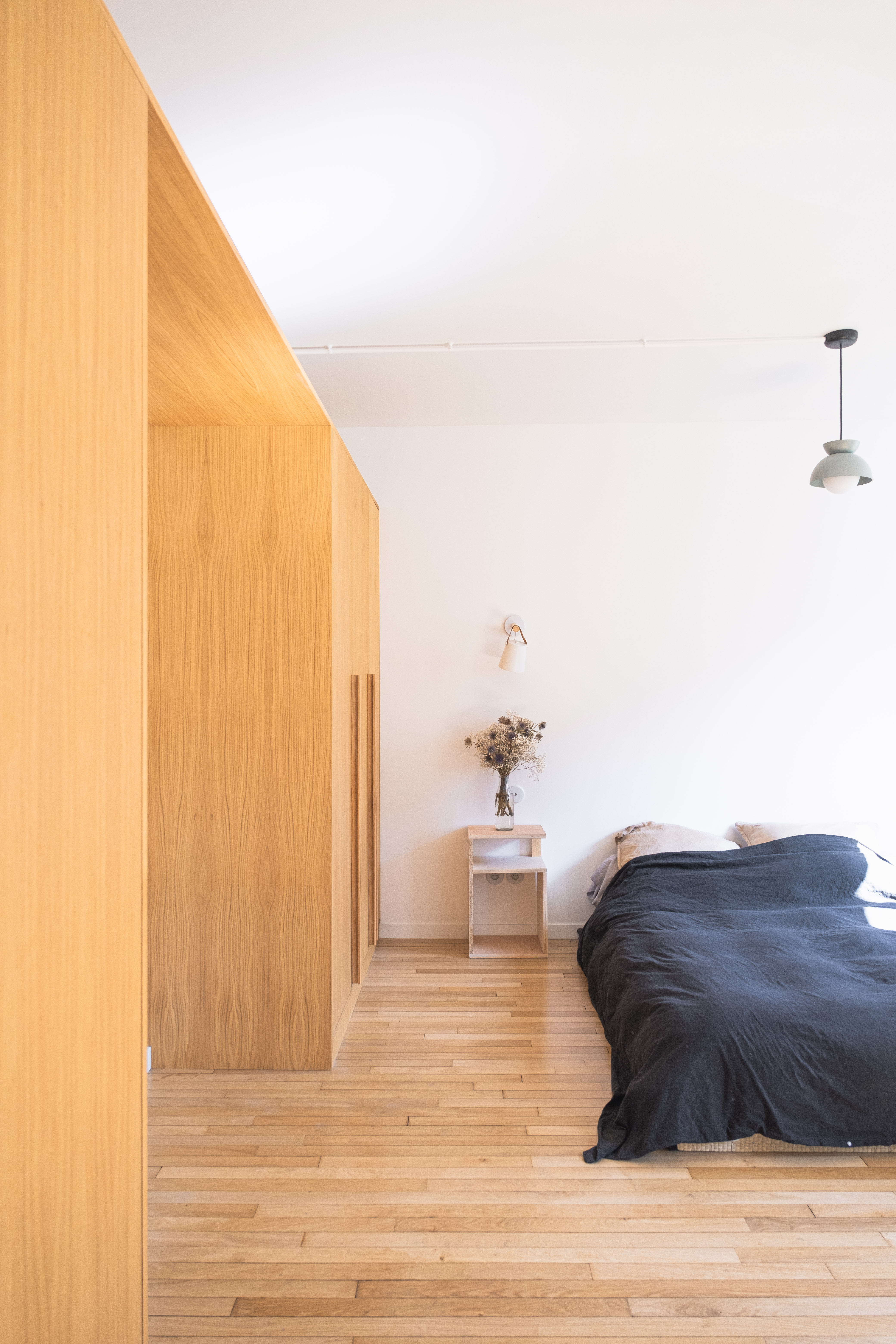 Un appartement parisien des années 70 modernisé et épuré. L’agencement intérieur sur mesure est conçu pour une utilisation adaptable de l’espace, dans une ambiance minimaliste et chaleureuse. Les lignes sobres et l’épure des matières — entre bois et béton — laissent libre cours à un aménagement du quotidien simple, authentique et vivant, à l’image du quartier de Ménilmontant. La rénovation s’inscrit dans une démarche encadrée de réemploi, accompagnée d’un calcul d’impact carbone.